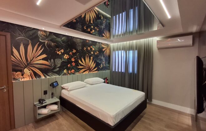 Em nossa Suíte Smart você desfrutará do conforto que procura para chegar ao prazer. Com ar-condicionado e ótimo custo-benefício, terá uma estadia perfeita para você e sua companhia especial.