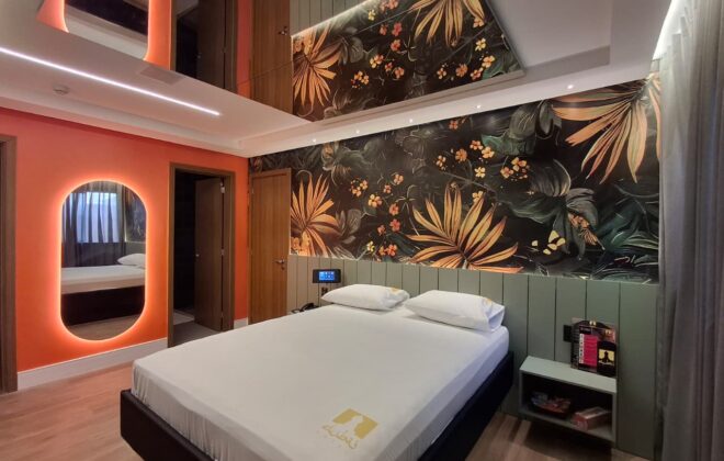 Viva um momento inesquecível a dois na Suíte Nova Dubai, totalmente reformada com uma decoração moderna e sofisticada.